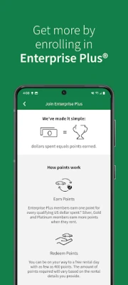The Enterprise car rental app allows you to easily find a rental car, view or modify upcoming reservations to extend your travel plans, get directions to your rental car branch or call roadside assistance for 24/7 help on the road. Stay signed into your Enterprise Plus account on the app to make reservations faster and earn points you can redeem for free rental days.
