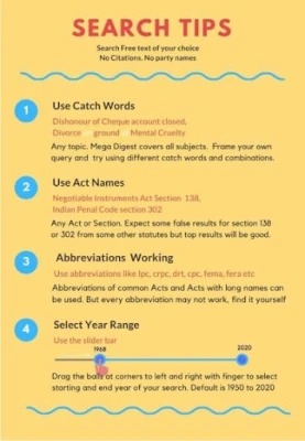 At the backbone of Mega Digest is the "Law Finder" India's biggest and the fastest law database since year 1950
