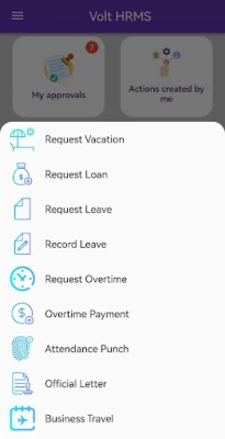 This is a mobile application developed to allow VOLT HRMS users to create and approve HR transactions from their mobile phones and to register employees attendance in the company branches based on their location relative to defined companies location on google maps, for the application to work, the users need to connect to the VOLT server of their company and have an account that can be accessed from mobile.